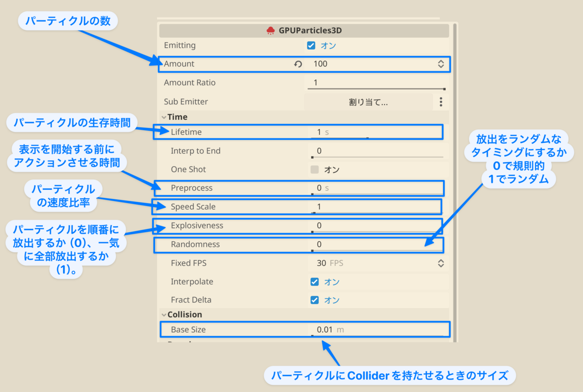 GodotにもParticle•Systemはあるけれど、残念ながらまだ日本語のサイトが少ない様子。
