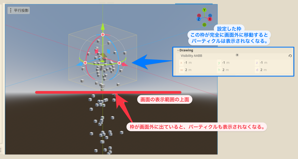これが今ひとつ理解できなかったけれど、要は画面外で無駄な放出を避けるための仕組み。という事ではないかと思う。